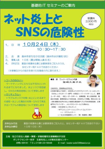 ★★★ポリテクセンターのオープン講座「ネット炎上とSNSの危険性」で講師を務めました(岩手県奥州市)