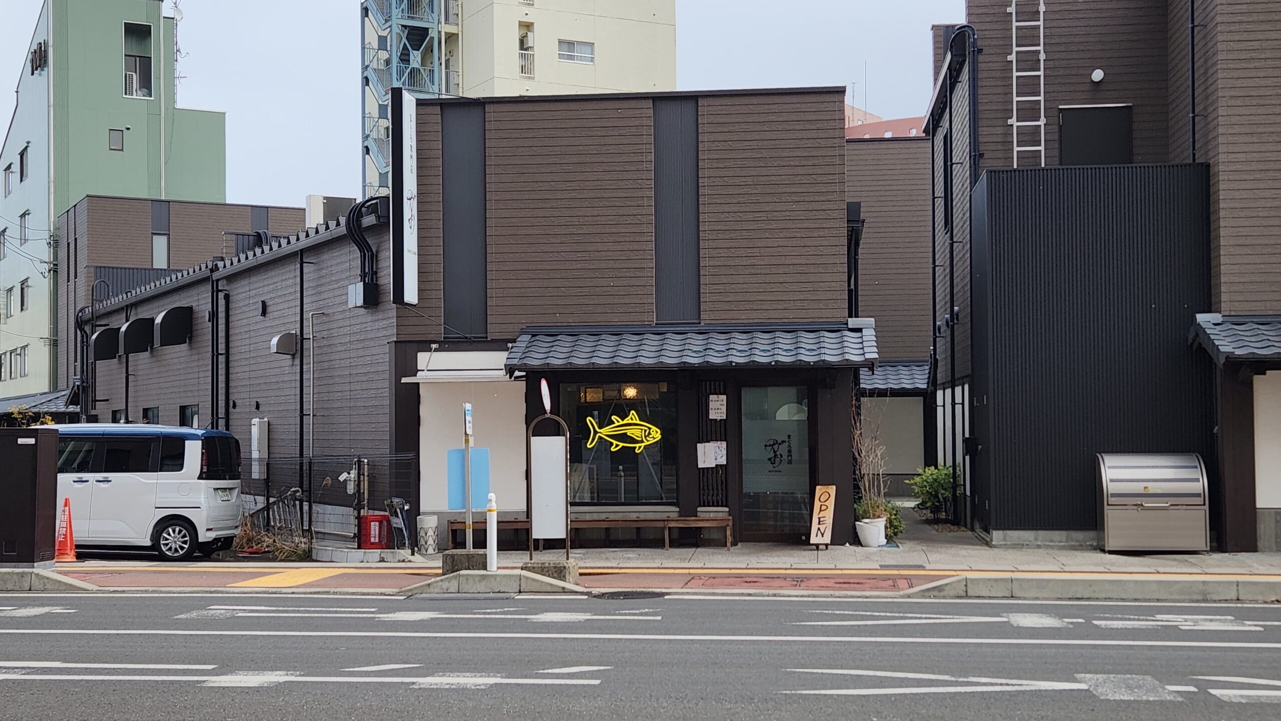 ・・・ですが、ナビが以前とは違う場所を示すので不安に思っていたところ、どうやらお店は2024年9月に今の場所に移転したようです。前はもっと道幅の狭い通りにありましたが、今はおしゃれな飲食店が多い鹽竈神社近くのエリアにあります。
