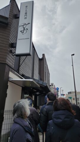今日は14回実施したシリーズ研修の最終日です。ならば「自分にご褒美を!」と思い、お仕事前にまぐろ専門店「がお」に立ち寄りました。以前、うちのお嫁さん(長男の奥さん)に話を聞いて行ってみたことがあるのですが、ネタの良し悪しが(たぶん)日によって微妙に違うのか、その日はお嫁さんが言うほどの美味しさではなかったように感じました。