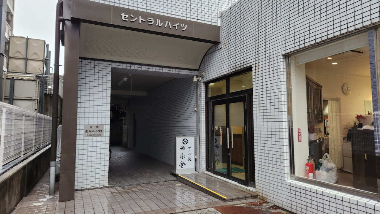 場所はセントラルハイツの1階にあります。一方通行の細い道にあり、しかもお店の入口が建物の横の奥のほうにあるので、通りからはわかりにくいのですが、近隣のサラリーマンに人気があり、「ロッキー盛り」という爆盛りメニューもあるため、昼時はとても混み合います。