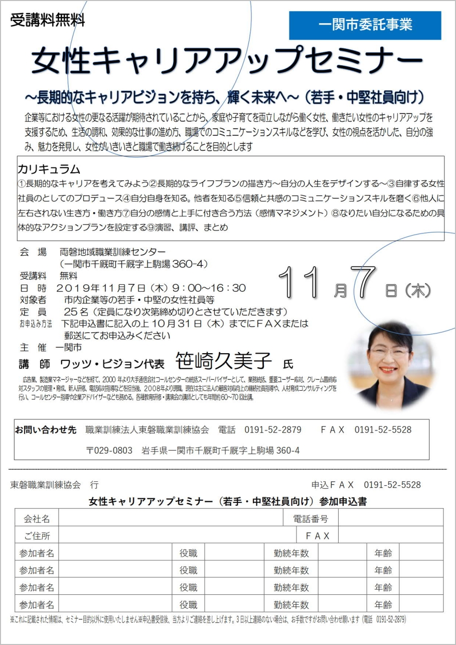 ![]() 2019.11.07 一関市様主催 『女性キャリアアップセミナー(若手社員向け)』 | ||
