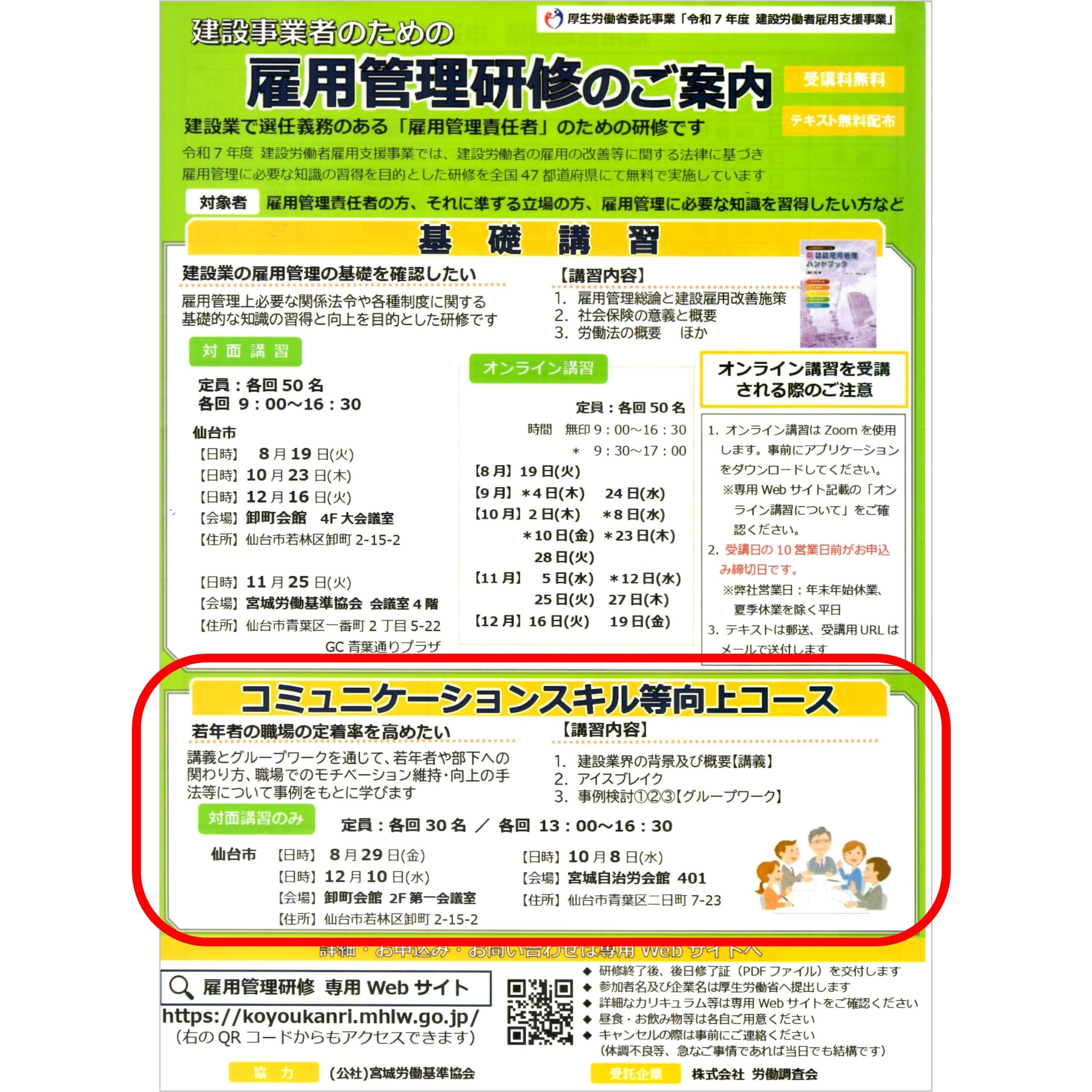 雇用管理研修「コミュニケーションスキル等向上コース」(宮城県仙台市)_insta-fr_img002 2025年8月30日 最終更新日時 : 2025年8月31日 笹崎久美子 FacebookXBlueskyHatenaCopy